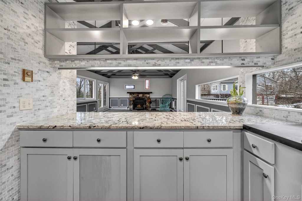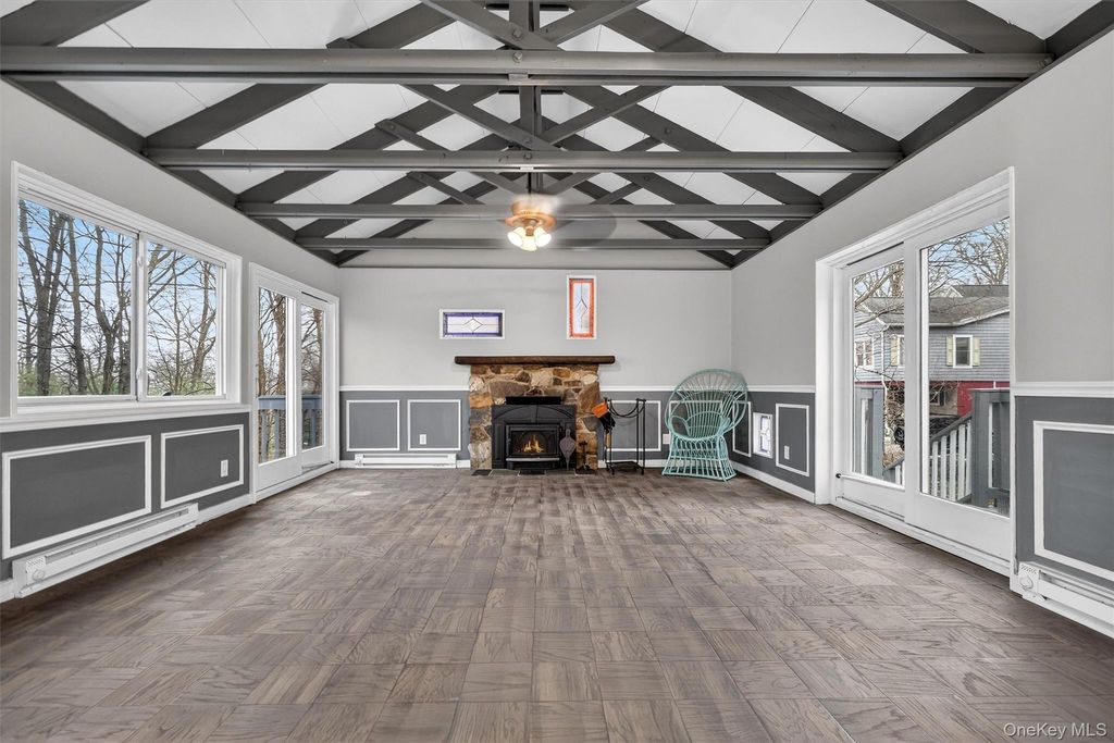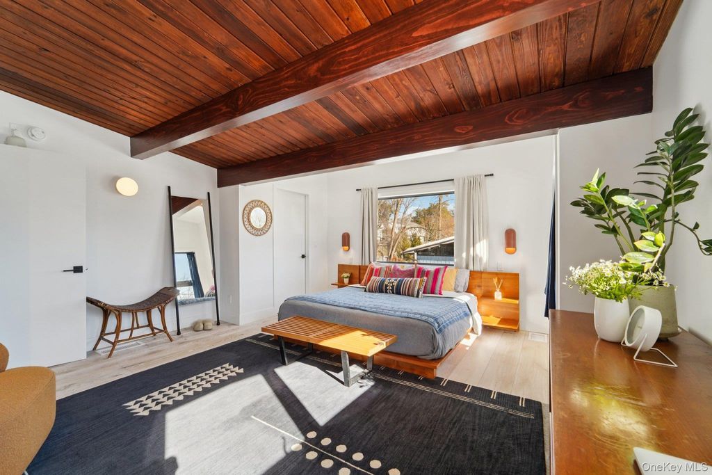 Perched above Kingston yet just steps from the city's vibrant heart, this Art Deco-inspired residence is a rare fusion of glamour and nature. Set on 8.5 private acres with sweeping mountain vistas and a tranquil pond, the home feels worlds away while remaining walkable to uptown Kingston. Recently reimagined and meticulously renovated, it rises three levels with a striking mix of architectural drama and modern comfort"”perfect for those seeking a one-of-a-kind escape without sacrificing convenience. Inside, the surprises are endless. A soaring two-sided stone fireplace anchors the main living space, where elegant dark hardwood floors meet walls of glass that open onto a broad deck with dramatic mountain views. The chef's kitchen is as functional as it is stylish, outfitted with state-of-the-art stainless steel appliances, a breakfast bar, and an adjacent vaulted dining room framed by Venetian windows. Two deluxe bedroom suites"”each with spa-like ensuite baths"”offer private retreats, while flexible bonus rooms can transform into a home office, creative studio, or playroom. The property itself is no less impressive. Mature trees frame wide-open lawns and mountain views, creating an atmosphere of serenity and grandeur. From your deck you'll hear the breeze, spot the pond glimmering in the distance, and still know that Kingston's Rondout waterfront, Midtown arts scene, and the historic Stockade District are minutes away. With Woodstock, New Paltz, Rhinebeck, Mohonk, and the Catskills all within half an hour, this home is more than a residence"”it's a gateway to the best of the Hudson Valley.