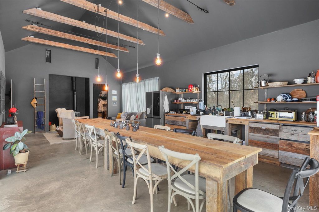 Welcome to an exceptional waterfront retreat in the heart of Red Hook, where refined design meets effortless lifestyle. Nestled along the serene Roe Jan Kill as it winds through your backyard, this remarkable residence offers picturesque water views and a setting that feels both private and inspiring. Living like a three-bedroom home, the layout is thoughtfully designed with generous proportions, seamless flow, and an abundance of natural light. The interiors blend modern sophistication with curated character "” featuring updated appliances, beautifully renovated bathrooms, and a striking industrial Garland stove that anchors the chef's kitchen with both presence and performance. Multiple decks invite you to take in the tranquil surroundings, entertain under the stars, or enjoy morning coffee overlooking the water. Fireplaces add warmth and ambiance throughout, creating inviting spaces in every season. The primary suite is a true sanctuary, highlighted by a spa-inspired bathroom complete with a luxurious, modern steam shower "” a daily indulgence designed for relaxation and renewal. Beyond the main residence, a detached studio and office space offer incredible flexibility "” ideal for an art studio, photography workspace, creative retreat, or private guest quarters. A two-car garage provides added convenience and functionality. The outdoor amenities elevate this property to a resort-like experience. A sparkling pool is complemented by an expansive pool house featuring a commercial-grade stove, snack bar, and changing room "” thoughtfully designed for effortless entertaining and unforgettable summer gatherings. A rare offering where lifestyle, luxury, and location converge "” this Red Hook waterfront retreat is truly one of a kind.