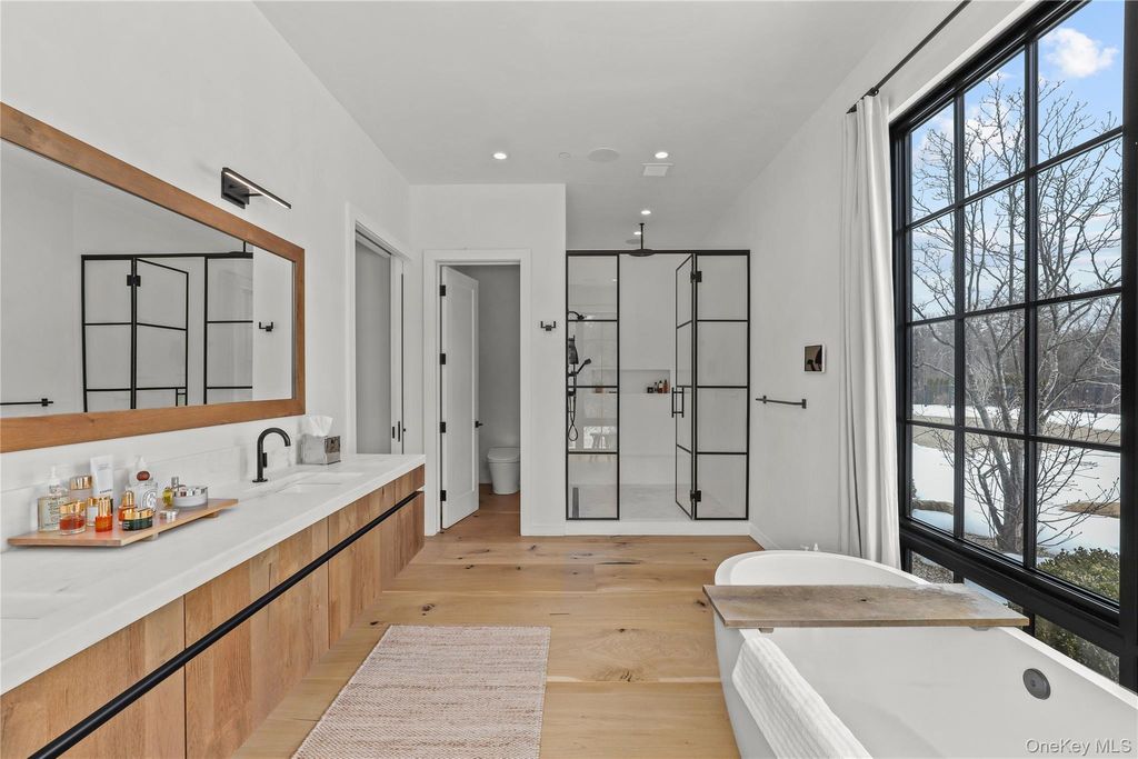 Perfectly turn-key modern stunner available in time to enjoy the pool this summer! Completely reimagined and renovated. Every detail is impeccable. Sunlight streams in from floor-to-ceiling mahogany windows/doors that open onto the expansive deck. New rift-sawn wide-plank oak floors and meticulously refinished ceilings add warmth and character. Thoughtfully designed throughout. Modern Scandinavian retreat vibes on nearly six acres of privacy, quiet, and natural beauty. The open plan is anchored by a quartz-clad chef's kitchen with dining area, breakfast nook, and chic den, flowing seamlessly into the stunning living room with its Moroccan-tiled gas fireplace. A tucked-away main-level suite offers flexibility as a restful guest room or private primary, complete with a spa-like bath. Upstairs, two thoughtfully designed bedrooms share a bath, while the primary suite impresses with a custom designer closet and an oversized bathroom featuring a freestanding tub, dual-head shower, and double sinks. The entry level with heated polished poured concrete floors is comprised of a living room space, yoga/gym/meditation room with infrared sauna, full bath, and large laundry room. Just outside the door is the brand-new garage designed for two cars and ample storage. Beyond that is the newly built pool perfectly situated for sunlight from morning to night. The striking property is bordered by wildflower gardens, mature trees, stone walls, and graceful lawns. In addition to all of that, 21 Black Spring offers enviable convenience "” zoned for the award-winning Katonah-Lewisboro schools and only minutes to Bedford's chic shops, coffee spots, restaurants, and the newly refurbished Bedford Playhouse that shows first run and revival movies. The celebrated Bedford Post Inn is just two and a half minutes away, and the vibrant village of Katonah, known for its lively downtown and cultural scene, is only a short drive. Direct access to Bedford Riding Lane trails and Ward Pound Ridge hikes round out this ideal location. A rare blend of modern design, natural serenity, and prime location, less than an hour from NYC, 21 Black Spring is a home that truly has it all. House is in the Town of Bedford with a mailing address of Pound Ridge. Use Pound Ridge for GPS.