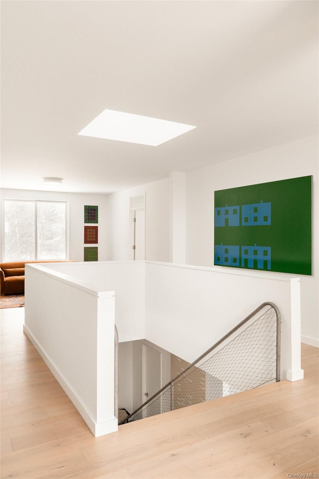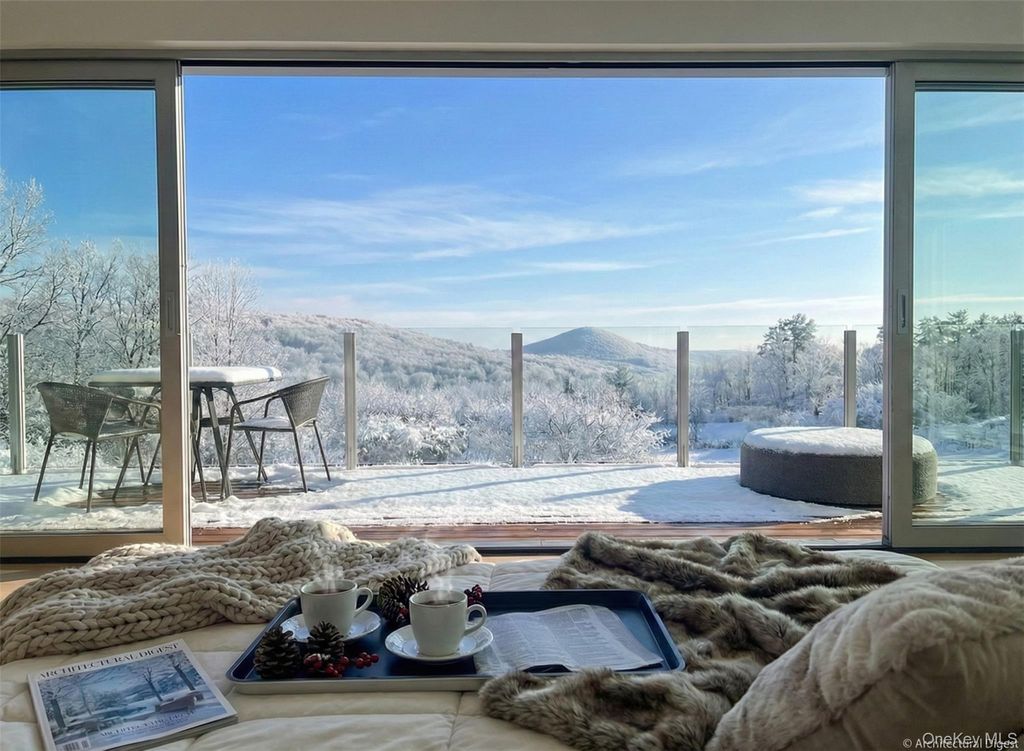 Towards the end of Sky Top Road and tucked away at the end of a long driveway sits the Nine-Square House. A dreamy modernist country house, the home is perched amidst dramatic natural topography with magnificent views of the Taconic mountain range. The Home On the ground floor are the double living room, dining area, and kitchen, all flowing into each other and anchored by a marble fireplace and three large glass doors opening to the exterior terrace with a breathtaking view. The kitchen features Danish-designed Reform cabinetry, Bardiglio marble, and Fisher Paykel appliances. An office/painting studio, a washroom, a dry bar, and a generously proportioned laundry room complete the main level. The central architectural piece of the home is the solid white oak staircase leading up to the second floor. The four bedrooms upstairs, though spacious, are much more private and intimate, each with large windows on two sides, communing with the serene and quiet landscape outside. The two sizable bathrooms have dedicated shower rooms and freestanding soaking tubs with panoramic views. The expansive landing of this level has a reading room at one end and a sitting area at the other. Distinguishing features of the Nine-Square House include high energy efficiency due to insulation exceeding all current standards, multi-zone central AC, radiant heated floors, solid 200 lb interior doors, satin nickel Kohler fixtures, cast iron sinks, and solid forged and machined brass and satin nickel door hardware. The Land & Surrounding Region The nine acres of land around the house, perfect as it is, has been touched as little as possible. There are wooded and open areas, with meandering walking paths trailing through the property. In an exceptionally peaceful corner of the Hudson Valley, the Nine-Square House is just 20 minutes from Hudson, Great Barrington, and Millerton and two hours from New York City. The home is just a few minutes from the crystal clear Copake Lake, where boat rentals are available, as well as nearby hiking trails, ski slopes, and countless other outdoor offerings. Favorites of the neighborhood include Zinnia's Dinette for the best fried fish in the Hudson Valley, Random Harvest for locally sourced produce, baked goods, and the perfect lunch, Hilltown Hot Pies in the summer for the most sought-after pie in the Berkshires, Little Cat Lodge for the coziest Swiss Alpine dining atmosphere, and so, so many more...