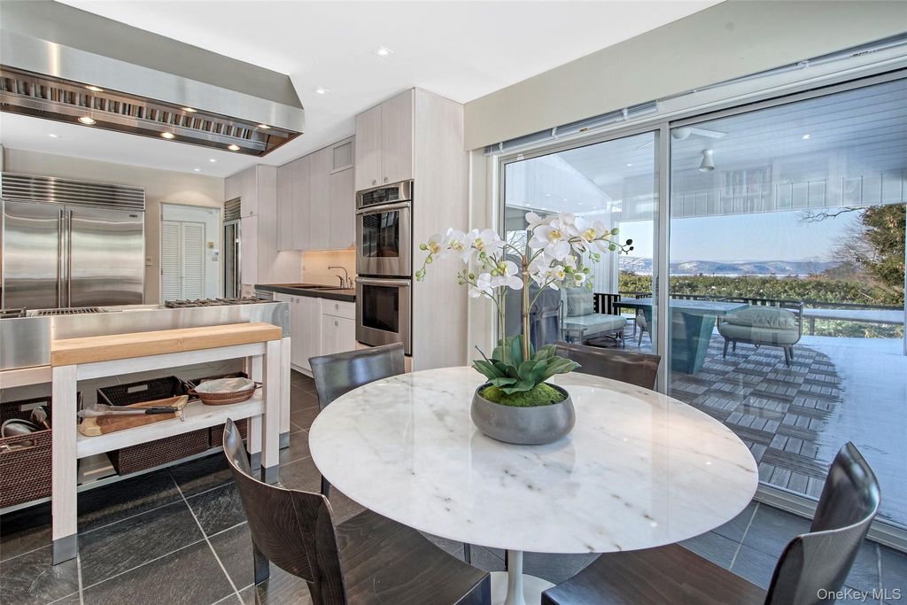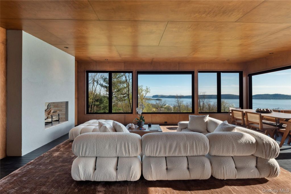 BREATHTAKING YEAR ROUND HUDSON RIVER PANORAMIC VIEWS define this iconic Mid-Century Modern residence! Located on Briarcliff's coveted Ridgecrest Road in the highly sought-after Briarcliff Manor School District, this modern masterpiece, being sold FURNISHED, is well known in architectural and interior design circles. Ideally located just minutes from the Scarborough Metro-North station, this home offers an easy commute to New York City. Set on a private acre of level, park-like grounds with mature trees, the property enjoys exceptional river views from nearly every room. Upon entering the home, a short mezzanine staircase leads to a dramatic, light-filled great room with integrated living and dining areas, where expansive walls of glass blur the line between indoors and out. Architectural details include hardwood floors, a limestone entry, custom lighting, and exceptional millwork with built-ins. The Chef's kitchen features custom-designed cabinetry and premium appliances"”Sub-Zero refrigeration and wine storage, Thermador double ovens with integrated microwave, a Viking six-burner gas range with griddle, and a Cove dishwasher"”and opens to a river-facing terrace for outdoor dining. The main level includes a family room or library with fireplace and a first-floor bedroom with en-suite bath. The lower bedroom level offers a private primary suite with outdoor access, ample closets, and a spa-like bath, along with two additional bedrooms, radiant-heated baths, an expansive laundry and mechanical room with a second Sub-Zero refrigerator, and generous storage closets. The home is on gas and sewer and is equipped with a Generac whole-house generator. Outdoor living includes a wraparound Mahogany deck, patio, and a flat landscaped yard. Included in the sale is a curated collection of high-end Mid-Century Modern and contemporary furnishings. Don't miss this truly one of a kind residence where architectural pedigree, panoramic beauty, and refined living converge in an enduring celebration of style, craftsmanship, and sophistication.
