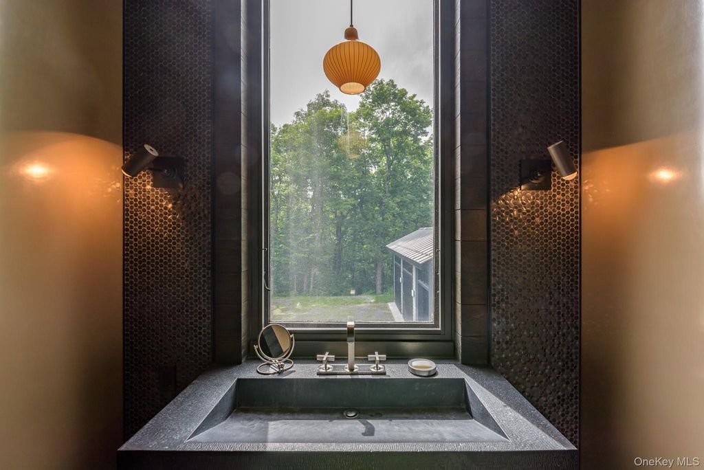 Welcome to the pinnacle of architectural brilliance, contemporary luxury & total privacy that is A House in the Woods. A captivating fusion of cutting-edge design & unrivaled sophistication, this architectural marvel redefines the boundaries of modern country living, seamlessly blending sleek aesthetics with advanced technological integration that allows form to meet function & innovation to intertwine with elegance. Sited on 8.49 boulder-strewn acres, with no neighbors in sight, this home abuts the 2,500-acre Awosting Reserve, which virtually assures that nature will be at your doorstep for decades to come. The home is reached from a dead-end street & a stone-filled drive that winds pass a 25-ft-high, show-stopping, undulating Cor-Ten steel wall. Outside, there's a 9.5' x 5.5' plunge pool surrounded by a 19' x 20' bluestone patio, both designed for limitless lounging on both summer and fall days and nights. Step inside & be greeted by natural light streaming through 15-ft floor-to-ceiling windows. Designed by award-winning architect William Reue to the exacting specifications of the current owner, every aspect of this home has been meticulously crafted. This net-zero, LEED Silver-certified, all-electric home features quadruple-pane windows & 74 roof-mounted solar panels with microinverters. There is radiant-heat flooring throughout, an Aprilaire 8100 energy recovery ventilator, & a direct-exchange geothermal heating & cooling system. Smart-home automations include wi-fi connected thermostats & Nest security cameras. An expansive & open-concept gourmet kitchen, living & dining areas, custom-designed cabinetry & top-grade appliances, honed Caesarstone countertops, a Scandanavian-style sauna, a two-car garage (with a 40-amp ChargePoint EV charger) & a basement exercise room complete the picture. The guest wing contains all three guest bedrooms, each of which features an en suite bathroom. The main guest bathroom features a bathtub that faces a floor-ceiling-window. There is also a sitting room with a queen-sized Murphy bed & kitchenette containing a refrigerator, sink, & electric cooktop. Finally, there is a walk-in closet containing a large-capacity LG washer & dryer set, as well as storage space for linens. A mere 2 hours from Midtown Manhattan, 20 minutes from Minnewaska State Park Preserve & the famed Gunks, 30 minutes to New Paltz & bus service to Manhattan, & 40 minutes to Poughkeepsie & the Metro-North/Amtrak station, this home represents the epitome of contemporary luxury that effortlessly combines unparalleled style, technological innovation, & architectural excellence. [The seller is managing the offer process through FinalOffer.com. All offers must be submitted directly on the platform. (Quickly search the property address and click on the ''Make an Offer'' icon, follow the prompts and submit an offer in minutes.) For questions about the listing, please contact the LA. Note: The seller reserves the right to add a Final Offer button at any time, which will secure the property at the specified price and terms. To receive real-time offer alerts, the property can be saved on the Final Offer platform.]