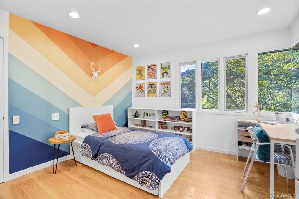 Set along the coveted Leatherstocking Trail, this striking mid-century modern home lives like a private boutique hotel. Expansive walls of glass and iconic glass-to-glass corner windows flood the interiors with light, while exposed beams and a wood-burning fireplace anchor the thoughtfully designed open-concept layout. The home is enhanced by slate and hardwood floors, clean architectural lines, and an effortless flow that balances style, warmth, and functionality. The sleek modern kitchen is both beautiful and practical, featuring stainless steel appliances, granite countertops, ample storage, and a beautiful walnut breakfast bar"”perfect for casual dining or morning coffee. Step outside to a private deck overlooking lush landscaped grounds, a sparkling in-ground pool and a dedicated spa, offering true resort-style living at home. The modern lower-level pool changing room with a full bath makes poolside lounging and entertaining a true indulgence. This home invites relaxation and elevated living at every turn"”from sun-drenched mornings to cozy evenings by the fire. Enjoy direct access to 2.5 miles of the Leatherstocking Trail, just 30 feet from your door. Ideal for jogs, dog walks, biking, or sunset strolls, it's nature on demand. Whether you're entertaining guests or seeking solitude, this home fosters a lifestyle of wellness, ease, and outdoor connection. Tucked away on a quiet cul-de-sac, the property offers exceptional privacy while keeping you close to everything. Just minutes from downtown Mamaroneck, the Long Island Sound, schools, parks, marinas, and major commuting routes including the Hutchinson Parkway and I-95. More than a home, this is where modern design meets natural beauty.