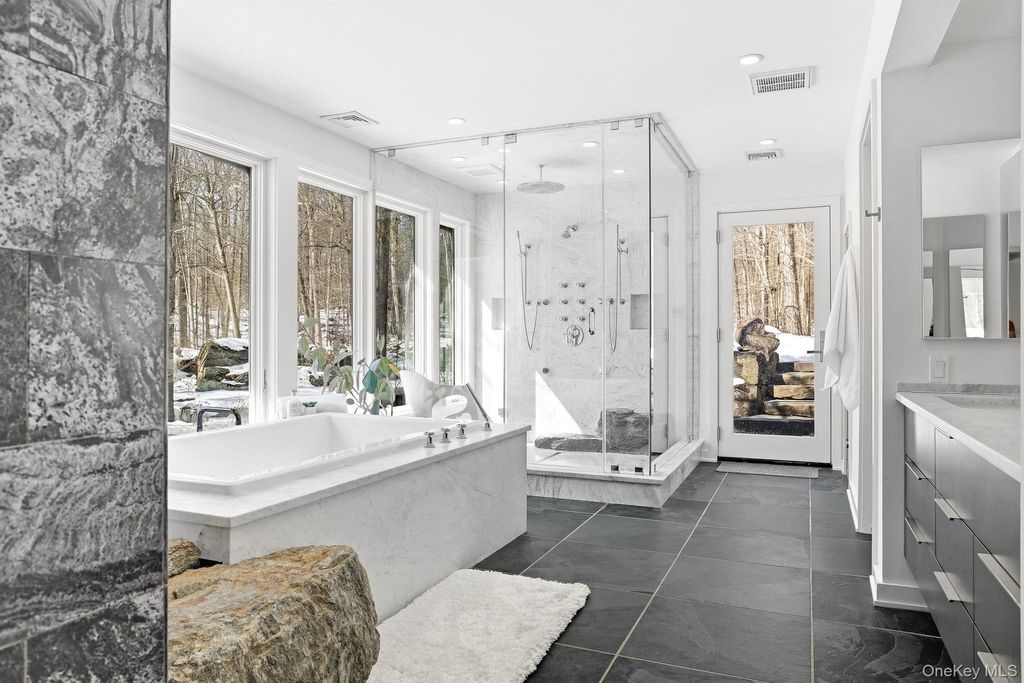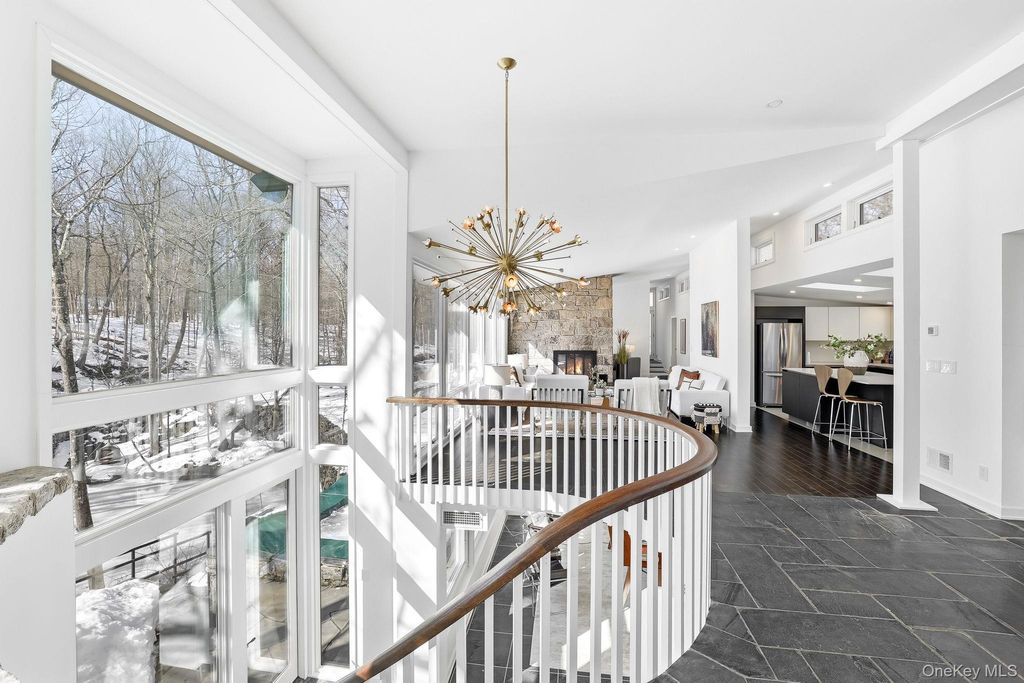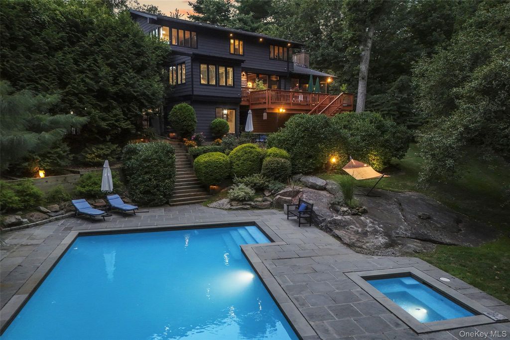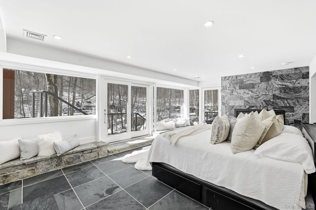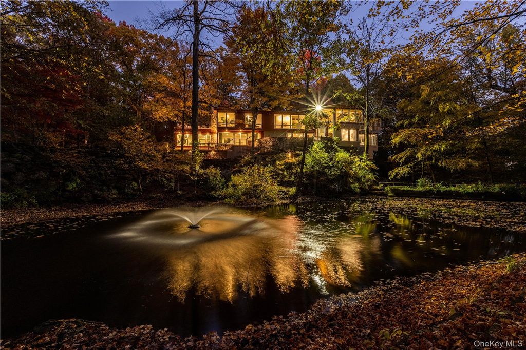Thoughtfully reimagined by its current owner with exceptional attention to detail, this home preserves its striking architectural character while introducing a level of refinement and sophistication rarely found. Walls of glass bathe the main living spaces in natural light and frame breathtaking views of the surrounding landscape, blurring the line between indoors and out. The grounds unfold like a private nature preserve: three tranquil ponds, a cascading waterfall stream, sculptural stone walls, terraces, and winding woodland paths that meander throughout the property. A beautifully sited pool completes this extraordinary outdoor retreat. Inside, a curated palette of stone, slate, wood, and glass creates a modern yet timeless aesthetic, perfectly complementing the home's natural setting. The lower-level primary suite is an indulgent private escape, featuring a spa-caliber bath with soaking tub, oversized walk-in shower, double vanities, and a sauna"”an experience worthy of the finest luxury resorts. An elegant in-law apartment provides exceptional flexibility for guests, extended family, or private work space. Properties offering this level of architectural distinction, serenity, and proximity to New York City are exceedingly rare. Arrive, exhale, and stay awhile. Home as art.