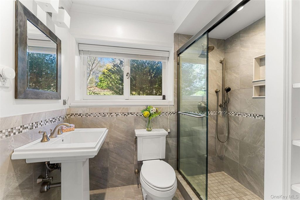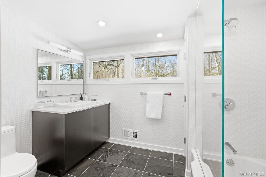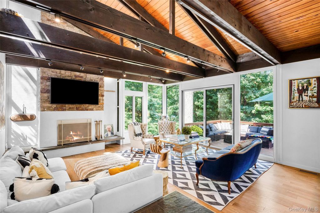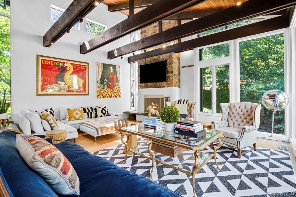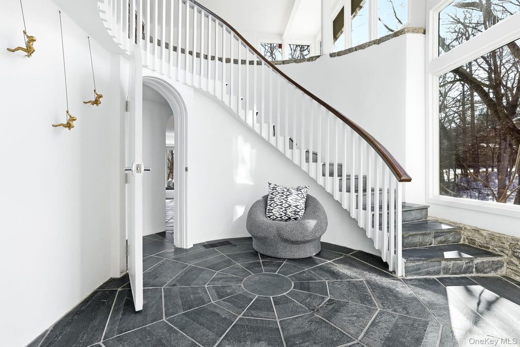 Thoughtfully reimagined by its current owner with exceptional attention to detail, this home preserves its striking architectural character while introducing a level of refinement and sophistication rarely found. Walls of glass bathe the main living spaces in natural light and frame breathtaking views of the surrounding landscape, blurring the line between indoors and out. The grounds unfold like a private nature preserve: three tranquil ponds, a cascading waterfall stream, sculptural stone walls, terraces, and winding woodland paths that meander throughout the property. A beautifully sited pool completes this extraordinary outdoor retreat. Inside, a curated palette of stone, slate, wood, and glass creates a modern yet timeless aesthetic, perfectly complementing the home's natural setting. The lower-level primary suite is an indulgent private escape, featuring a spa-caliber bath with soaking tub, oversized walk-in shower, double vanities, and a sauna"”an experience worthy of the finest luxury resorts. An elegant in-law apartment provides exceptional flexibility for guests, extended family, or private work space. Properties offering this level of architectural distinction, serenity, and proximity to New York City are exceedingly rare. Arrive, exhale, and stay awhile. Home as art.